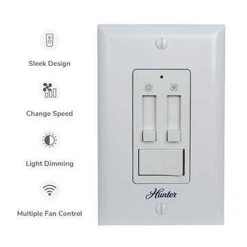 Take complete command of your ceiling fan with our reliable and easy-to-use fan controls. Whether you need a wall-mounted fan controller, a handheld remote, or a smart control option, Hunter offers solutions that make adjusting speed and lighting effortless. Our ceiling fan controls are designed for smooth operation and dependable performance, ensuring you enjoy the perfect airflow every time.