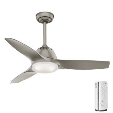 A lot of smaller rooms, especially ones that have been converted from garages, attics, or basements into more functional spaces, don’t have overhead lighting. Small ceiling fans with lights give you a great way to add brightness without needing extra lamps or relying on windows. We offer a wide selection of small ceiling fans with lights to make finding the right fit for your room easy. Choose from one bulb, two bulbs, or three bulb fans that you can operate with a pull chain, wall switch, or remote. For even more options, check out our full ceiling fans with lights collection.